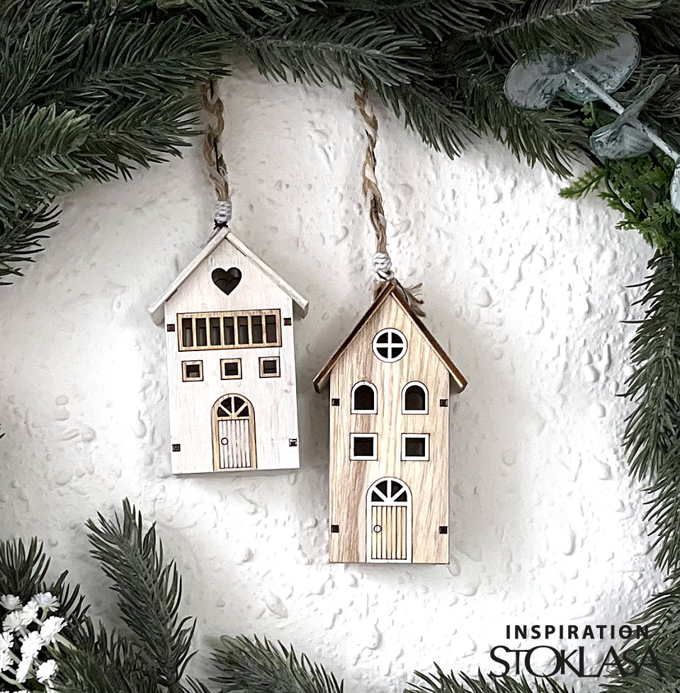 Domki drewniane dekoracja do zawieszenia mix wzorów