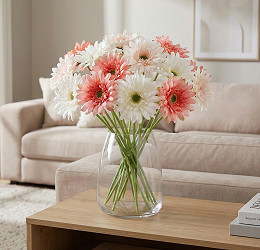 Ta sztuczna gerbera o długiej łodydze wniesie świeżość i radosne kolory do Twojego wnętrza. Możesz ją umieścić samodzielnie w eleganckim wazonie lub połączyć z innymi kwiatami, aby uzyskać bogatszą kompozycję. Wewnątrz łodygi znajduje się drut.