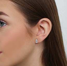 Stainless steel earrings are decorated with rhinestones . Their size is discreet, but they give a luxurious impression.